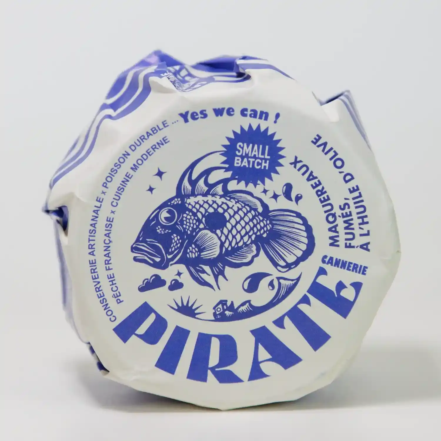 Makreel gevangen door ambachtelijke vissers in Saint-Jean-de-Luz, gerookt op beukenhout en gekonfijt in extra vierge olijfolie. Pirate Cannerie maakt hier een klassiek product met Frans vakmanschap.