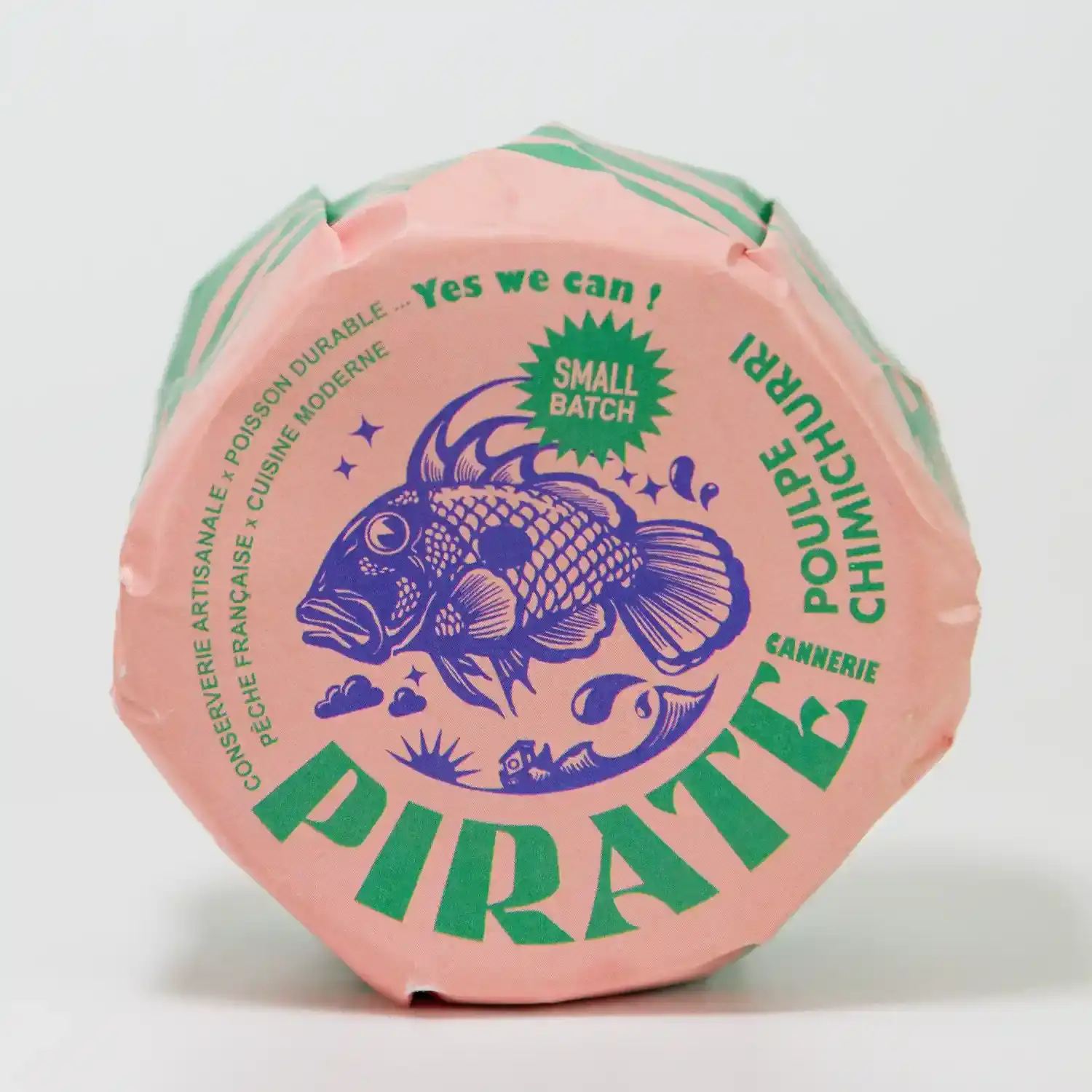 Argentijnse chimichurri ontmoet Franse octopus: Pirate Cannerie maakt vis in blik met recepten uit de wereldkeuken. De octopus wordt bereid met olijfolie, knoflook, piment en aromatische kruiden in de stijl van de populaire Argentijnse saus.